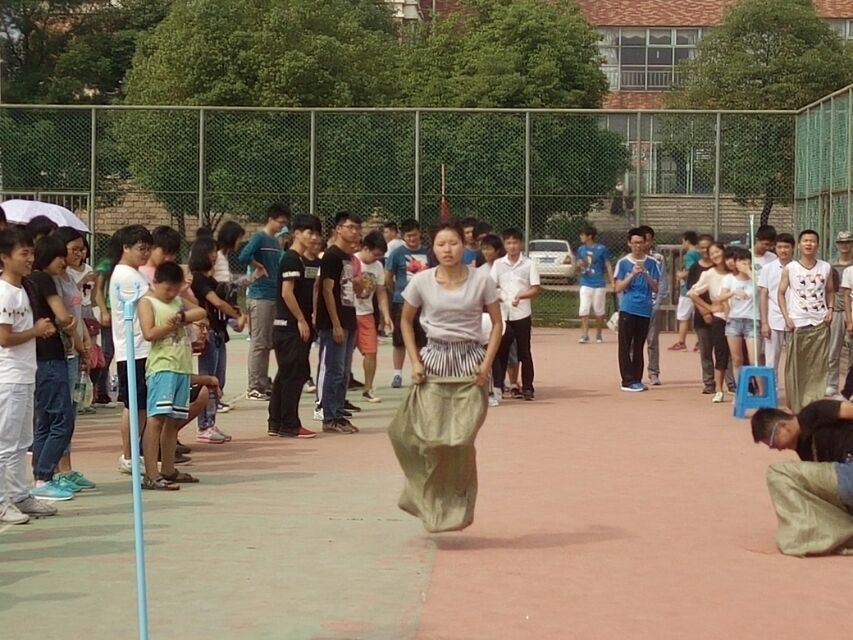一段时间后,袋鼠跳开始了,同学们一个个钻进袋子在运动场上蹦蹦跳跳的样子真是可爱极了(哈哈,希望童鞋们能一直这样可爱下去)~这个项目充分考验了同学们的心态,稳中求胜,才是真理。