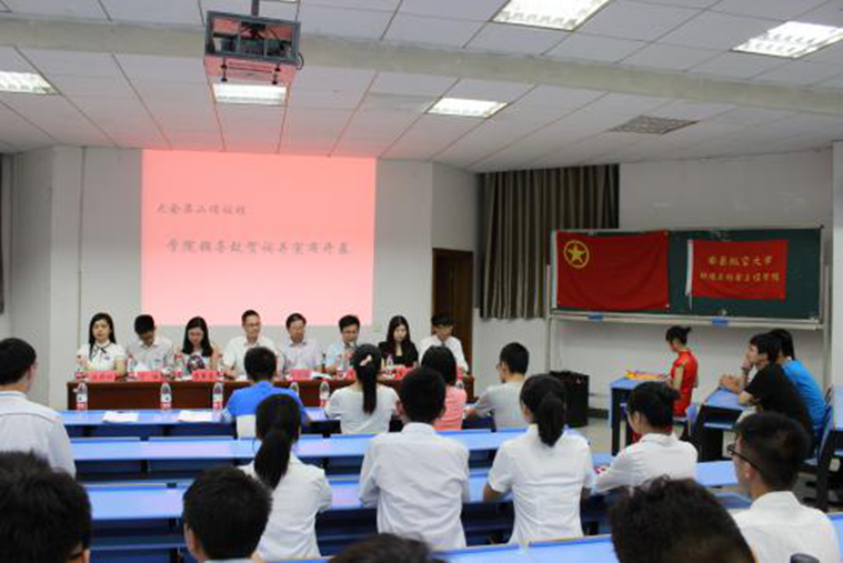 6月17日晚七点,环化学院于F100举办第九届团员代表大会暨学生代表大会。大会出席嘉宾有,环化学院党委书记陈钧,环化学院副院长吴志强,环化学院团委书记李寿峰,环化学院学工处主任李薛君,第八届学生会主席陈婧娴,第八届团委副书记刘家玮,特约学生嘉宾丁鹏、薛卿。大会根据《南昌航空大学学生会章程》制定办法,大会选举产生环化学院第九届两委会委员主要成员,大会结果将产生共青团团委会拟设常委2名,部长5名,学生会拟设常委3名,部长6名以及学生委员会委员10名,共青团委员会委员7名。