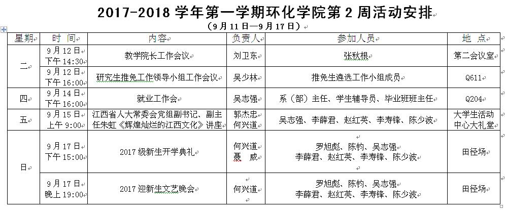 环化学院第2周活动安排