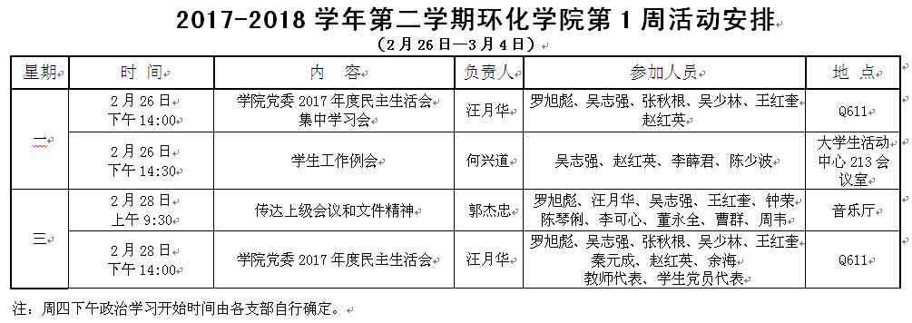 环化学院第1周活动安排