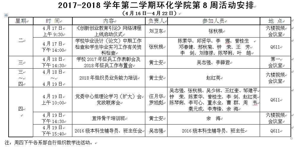 环化学院第8周活动安排